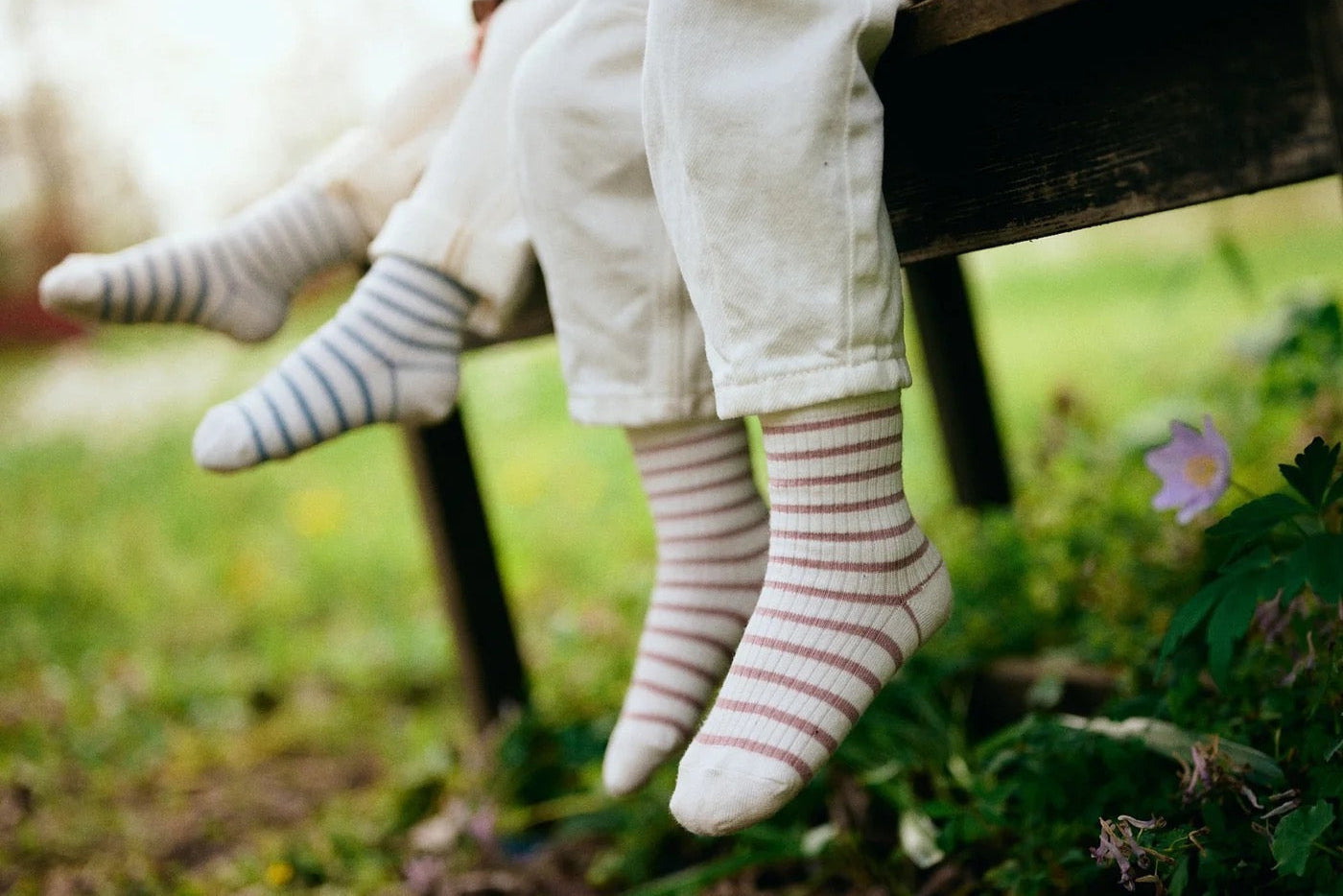 Myke og lette viskose-bambussokker i ribbet struktur med smale striper fra MPkids, med klassisk ribbet kant.